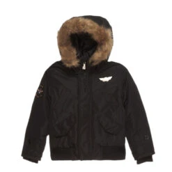- Capuche avec liens de serrage et fourrure synthétique amovible.
